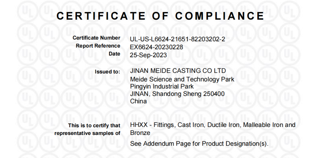 Meide Group got the UL certificate for a new batch of American Standard Mechanical Joint Fittings