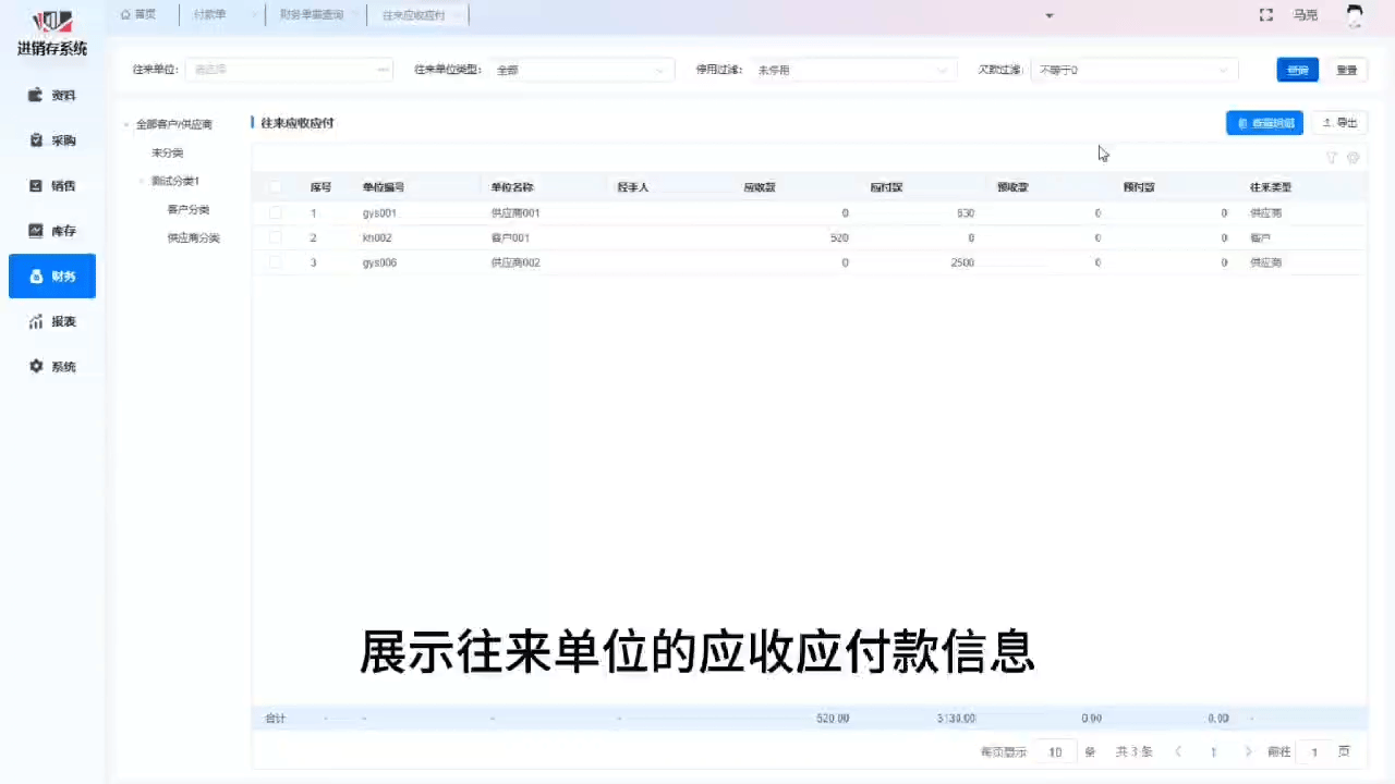 財務模塊,支持財務處理收付款,記錄費用,其他收入等財務記賬實施查看科目余額,支持往來對賬,支持月結生成利潤表,資產(chǎn)負載表等財務數(shù)據(jù),方便您隨時了解企業(yè)財務狀況。