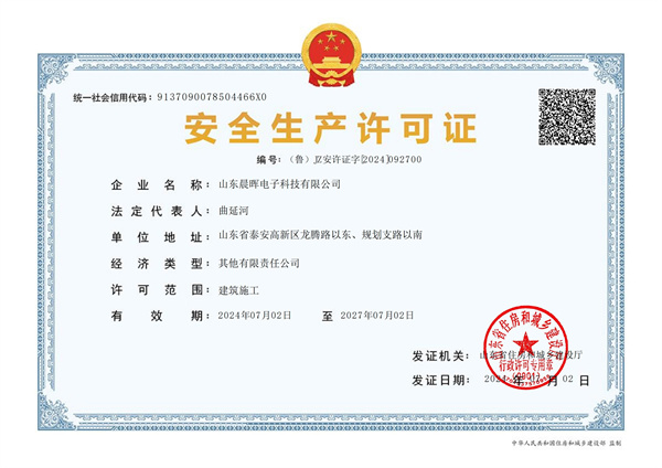 2024年7月2日,玫德集團旗下山東晨暉電子科技有限公司榮獲建筑施工企業(yè)安全生產(chǎn)許可證,這標志著山東晨暉在建筑行業(yè)安全管理方面邁出了堅實的步伐。