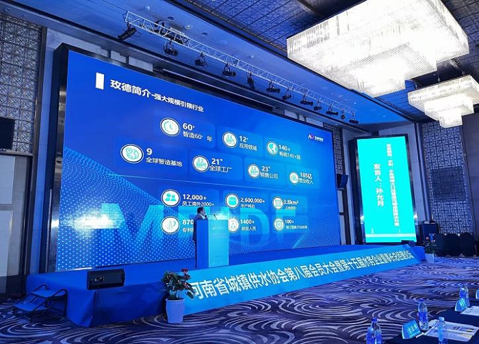 本次大會邀請了中國城鎮(zhèn)供水排水協(xié)會、河南省住建廳等業(yè)務主管單位、行業(yè)專家;河南省城鎮(zhèn)水務企業(yè)負責人及協(xié)會全體會員單位主要負責人、技術人員;各類供水設備材料生產(chǎn)企業(yè)代表等300余人參與,玫德集團積極協(xié)辦并展示在水務領域的創(chuàng)新技術和最新研發(fā)的產(chǎn)品。