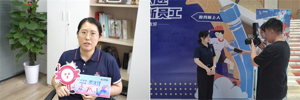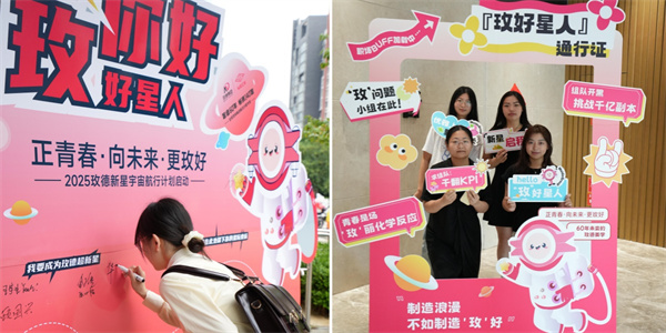 平陰總部與科創(chuàng)中心的巨幅簽名墻前,新員工們莊重簽下姓名,筆墨間盡顯青春抱負(fù)??苿?chuàng)中心特設(shè)“‘玫’好星人通行證”主題相框,新員工手持“hello,‘玫’好星人”手舉牌創(chuàng)意留影。鏡頭定格的一張張笑臉,成為職業(yè)生涯的珍貴扉頁(yè)。