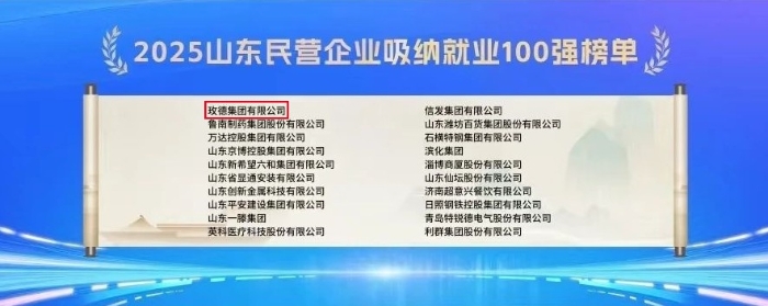 玫德集團(tuán)入選2025年山東民營企業(yè)百強(qiáng)系列榜單