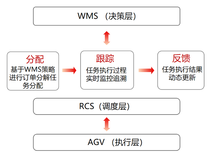 方案核心依托玫德自主研發(fā)的 “決策層 + 調(diào)度層 + 執(zhí)行層” 三級架構(gòu),各環(huán)節(jié)緊密協(xié)同、無縫銜接,確保倉儲作業(yè)精準高效、全程可追溯。